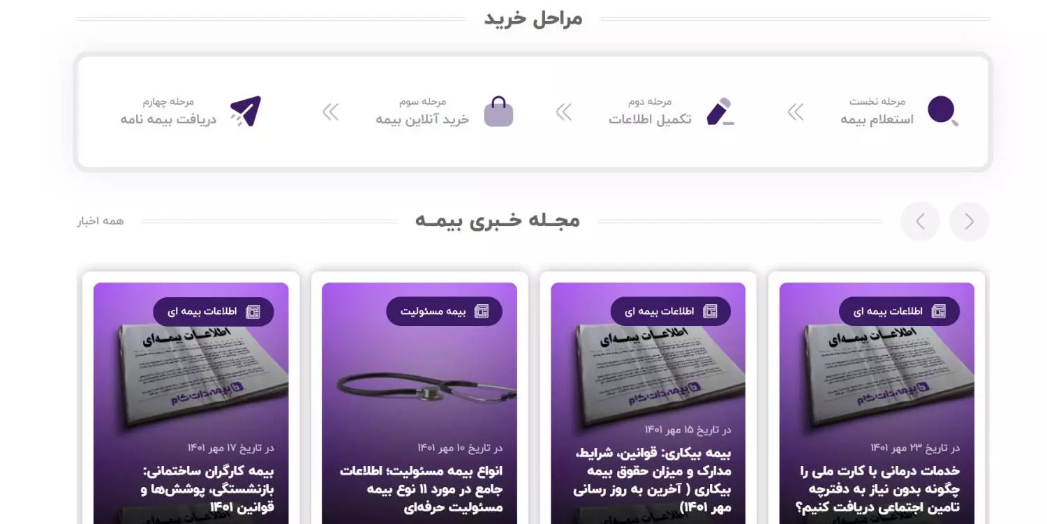 این سامانه در تمام مراحل خرید بیمه در کنارتان است تا بهترین خدمات و پوششهای بیمهای را انتخاب کنید. به کمک سامانه بیمه دات کام میتوانید قبل از وارد شدن به پروسه خرید درباره شرکتهای بیمه اطلاعات کسب کنید. با انواع بیمه، طرحها و پوشش های مالی هر شرکت آشنا شوید. سپس خدمات و قیمت بیمه شرکتهای مختلف را با هم مقایسه کنید. در صورت نیاز از کارشناسان بیمه مشاوره تخصصی بگیرید. در نهایت هم با کمترین زمان و بدون نیاز به مراجعه حضوری، بیمه مورد نیازتان را بهصورت آنلاین بخرید.
