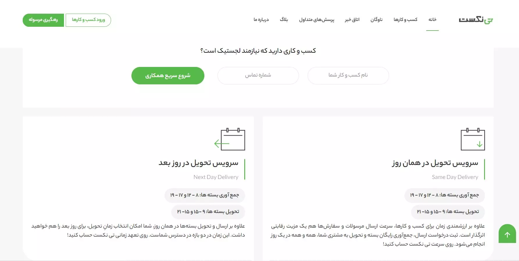 خدمات سامانه تی نکست چیست ؟ : آیا برای شما هم پیش آمده که ارسال یا دریافت مرسولات با اتلاف وقت زیادی به دستتان برسد؟ آیا شما نیز به دنبال اپلیکیشنی بودهاید تا بتوانید مرسولات خود را به صورت آنلاین در کمترین زمان ارسال کنید؟ تا به حال چندبار به خاطر دیر رسیدن مرسوله با مشتری یا فروشنده خود درگیر شدهاید؟ برخی تجربهها راهنمای خوبی برای انتخابهای ما هستند. اگر کارفرما، تولید کننده یا فروشنده محصول خاصی باشیم این مقوله بیش از هر چیز دیگری در کیفیت ارائه خدمات به مشتریانمان اهمیت دارد. همچنین این خدمات یک ضرورت برای خریداران کالا یا صاحبان هر نوع مرسوله پستی میباشد. از این رو شناخت شرکتهای لجستیکی مناسب برای ارائه و دریافت خدمات با کیفیت در هر کسب و کاری ضروری است.