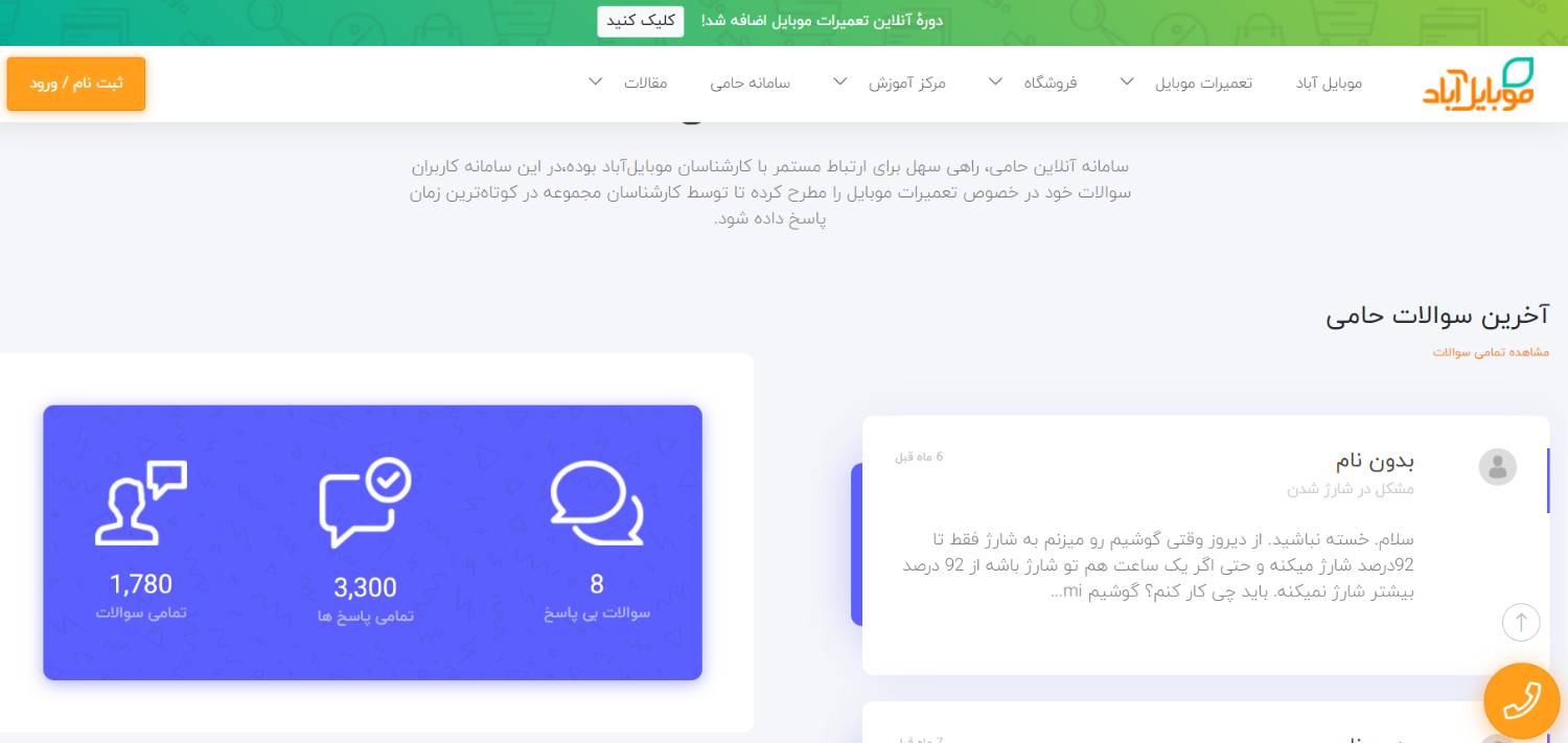 توجه به اینکه این روزها کارآمدترین وسیلهای که در دست افراد می باشد گوشی موبایل است و خراب شدن گوشی موبایل تقریبا زندگی روزمره را فلج میکند، موبایل آباد از ابتدای سال 1395 تعمیرات موبایل آنلاین را راه اندازی کرد. با ثبت درخواست تعمیرات موبایل خود در سایت موبایل آباد، نزدیکترین نماینده موبایل آباد با شما تماس گرفته و با پیک رایگان گوشی شما را تحویل میگیرد و پس از تعمیر فوری گوشی موبایل شما و برطرف شدن ایرادات آن، گوشی را به سرعت به شما تحویل می دهد. موبایل آباد علاوه بر تعمیرات موبایل با پیک رفت و برگشت رایگان، ارائه دهنده ضمانت اصالت قطعات است و خیال شما را بابت استفاده از قطعات اصلی راحت میکند. موبایل آباد به شما گارانتی بی قید و شرط تعمیرات نیز می دهد تا پس از تعمیر گوشی خود هیچ گونه نگرانی بابت خرابی مجدد گوشی و هزینه آن نداشته باشید.